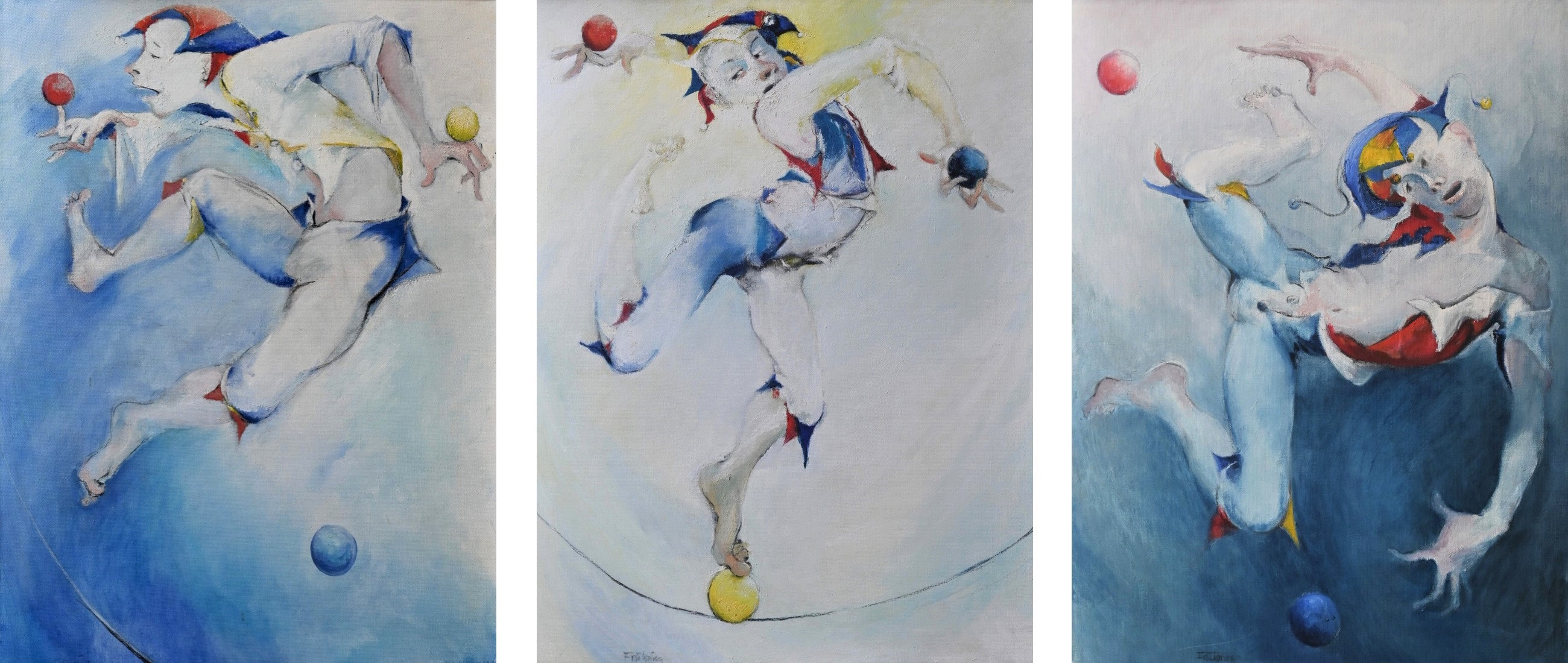 Das Thema "Umbrüche - Aufbrüche - Sehnsüchte" zum 60. Jahrestag der Gründung der Evangelischen Akademie Meißen gestalte ich figürlich-allegorisch mit dem Dreiklang Gelb, Rot und Blau.