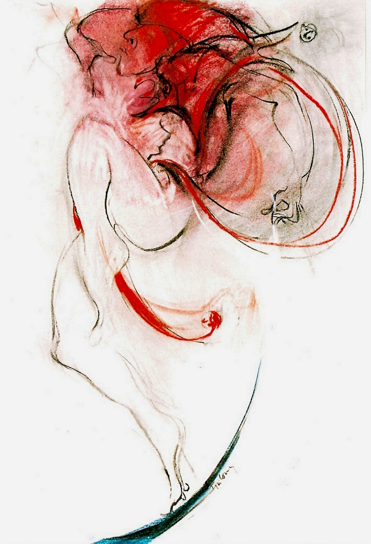 Immer wieder fasziniert mich die zeichnerische und malerische Darstellung des Menschen. Dabei bilde ich nicht ab, vielmehr versuche ich, menschlichem Erleben und Empfinden Ausdruck zu verleihen. Ich will darstellen, wie Freude oder Lust, Schmerz oder Trauer sich in Gesten, Haltung und Bewegung ausdrücken. Die Balance von Gegensätzen, die unser Leben bestimmen, wie Bindung und Trennung, Glaube und Zweifel, Angst und Wagnis regen mich zum Zeichnen und Malen an.