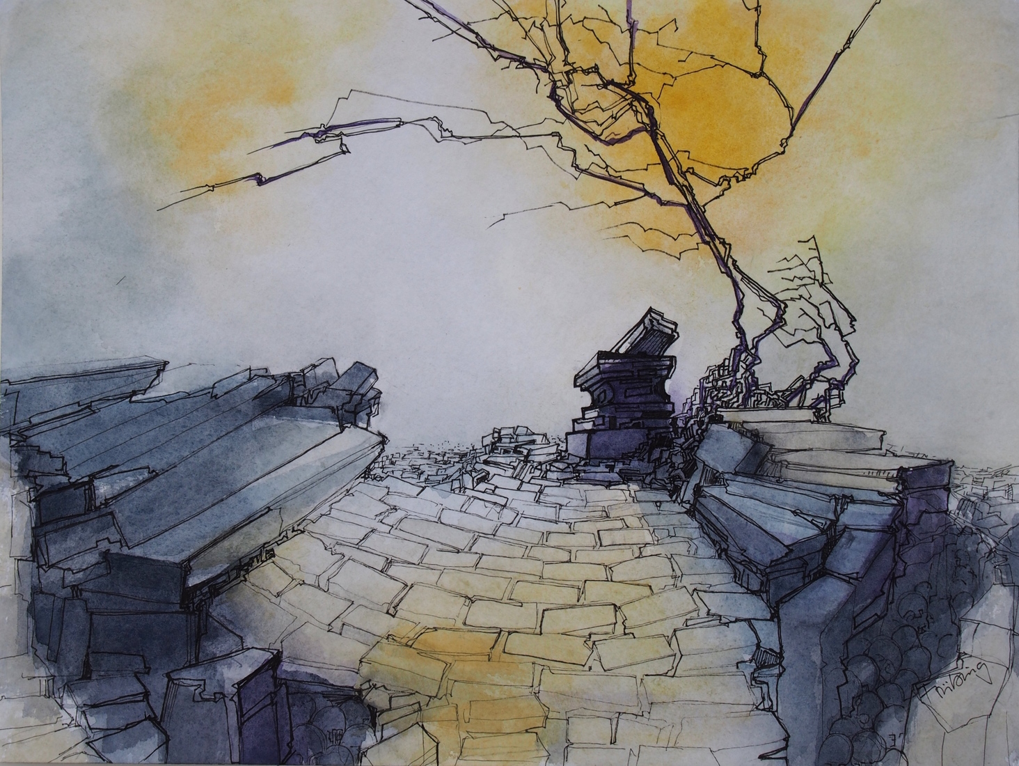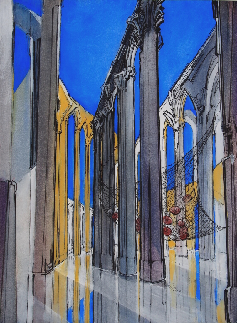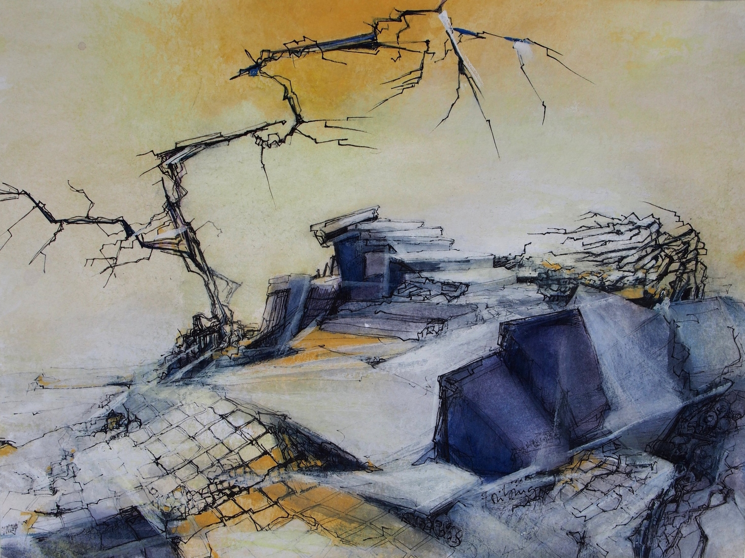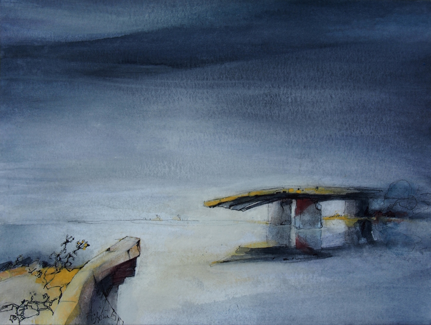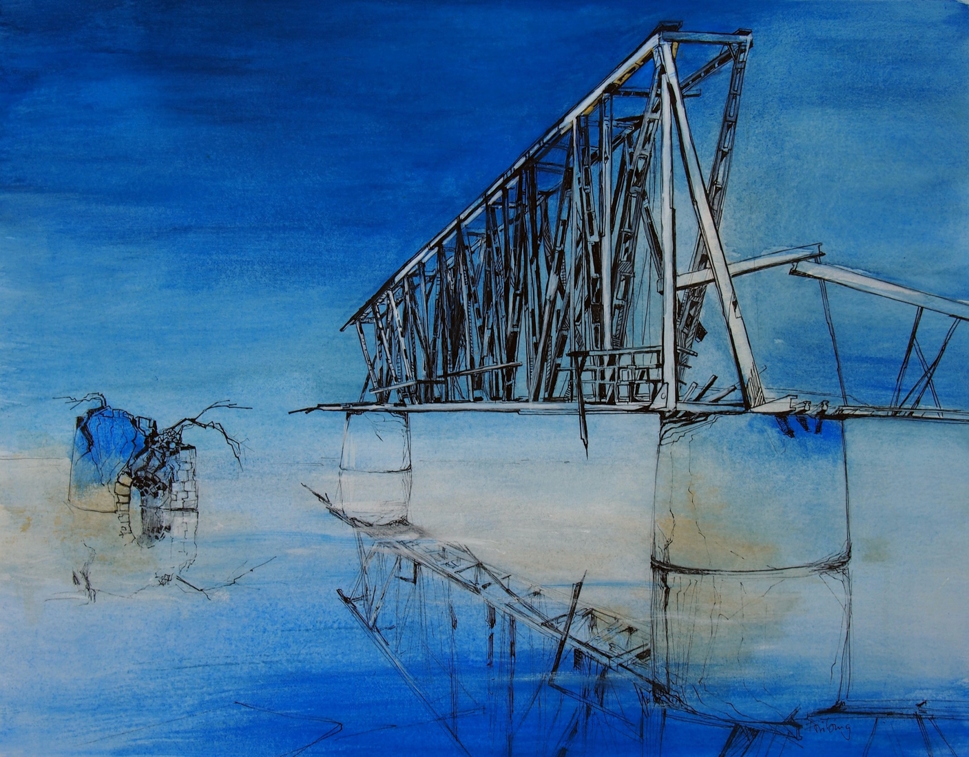 Zerstörte Brücken, sich im Wasser spiegelnd, leere Sockel, auf denen einst Denkmäler standen, Kriegsruinen gotischer Kirchen, alte Straßen, die nirgendwo mehr hinführen, eingebunden in stille, nahezu unberührte Flusslandschaften mache ich zum Gegenstand malerischer und grafischer Spurensuche und Reflexion über nunmehr 75 Jahre zurückliegende Kriegsereignisse, und - im Kontrast dazu - über die Schönheit infolge ihrer Abgeschiedenheit scheinbar noch intakter Naturräume. Ich will ein Zeichen setzen gegen das Vergessen, gegen das Verwischen historischer Spuren, für Ausgleich und Versöhnung und für gerechte Bewertung in der Zukunft, und nicht zuletzt für die Bewahrung historischer Landschaften und Orte. Die Reflexion als physikalischer Vorgang und meine gedankliche Reflexion bestimmen die Komposition auf der Bildfläche. Im Spiegel offenbart sich Verborgenes, das Bild erhält eine Dimension in die Tiefe, nicht nur räumlich-geometrisch als Tiefe des Wassers oder des Raumes, sondern auch zeitlich. Vergessenes und Verdrängtes kommen so hintergründig in die Bildfläche und machen nachdenklich.